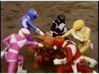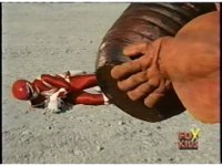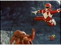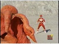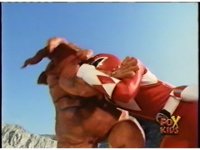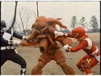 Follow-up shot is US footage of Thunder Megazord punching Octophantom. |
