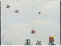 Blue, Black, Pink, Yellow, and Red flip over the camera at alternating angles under a cloudy sky. |