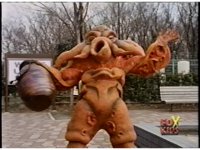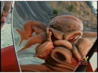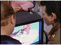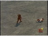 Sections of the Saban dubbed cartoon, known as "Les Adventures de Carlos" in France. More of it runs throughout the scene in background, as does the original music. |