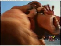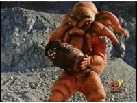 Follow-up shot is US footage of Octophantom punching Thunder Megazord. |