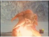 Likely trimmed from a Power Blaster-induced explosion; Fades into next shot. |