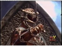 Goldar begins walking to our right, motioning arms and talking to our left, pan left and zoom in as Zedd stands up from throne, and punches right fist forth, slowly lowering it as he glares to our slight right, giving a quick head shiver. |
