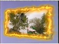 Not used in 209 likely due to signs of civilization in background; Slowed; Altered to fit in flame-screen. |