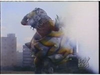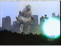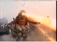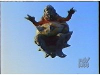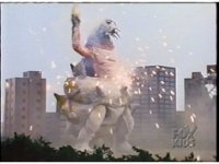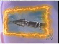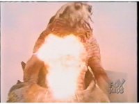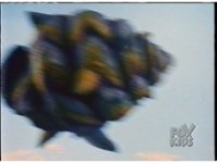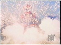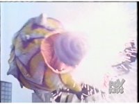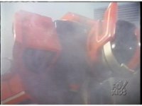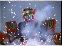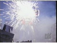 Turban Shell collides explosively with the (original, shh!) Megazord, losing its cover as a bright flaring of spark bursting is covered by an increasing, superimposed explosion as shot zooms out. |