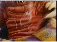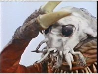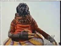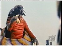 Turban Shell motions hand, then waves it back and forth in front of mouth as Zord stirs partially in frame. |