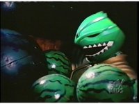 Beneath the piles of watermelons, Green Ranger fails to realize he picked a bad place for a nap. |