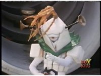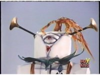 Zoom out from fan vent, as Zedd stands, back to balcony railing, talking to Goldar in the background. Zedd then turns completely around, facing our slight right, his right arm out wide, he talks, then suddenly thrusts his staff forth, as it crackles and flashes with energy. |