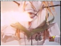 Zoom out as gem on saber glows, causing bluish electricity to surge throughout Trumpet Top, frying him until he brightly explodes with sparks. |