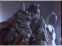 Standing beside the Z-Putties, Squatt is turned to Baboo as both act excitedly, hopping up and down and shaking arms in the air, as Squatt then faces front and they continue to express evil joy. |