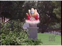 Energy swirls about onto fist statue, causing Nimrod, the Scarlet Sentinel, to appear. |
