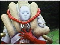 Lord Zedd stands beside his throne, back to us, looking at the cut-out of Earth, emitting his eyebeam, which soon halts and he turns to our right. |