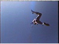 Blue Ranger falls from the sky, kicking his feet and grabbing at the air. |