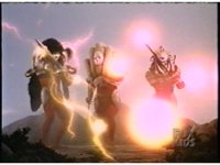Zoom out as Nimrod motions hand forth, firing multiple yellow energy balls forth, while AC & DC fire energy projectiles of their own from their swords in the same direction. |