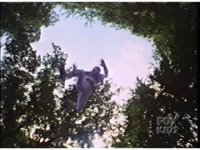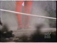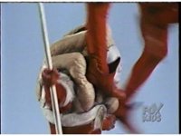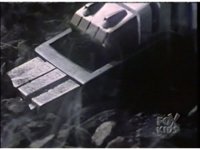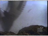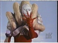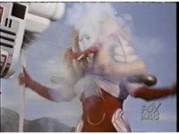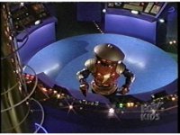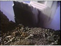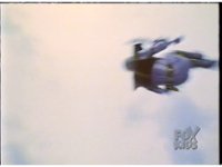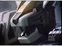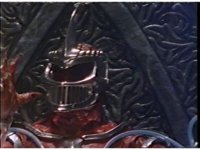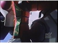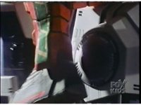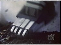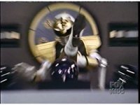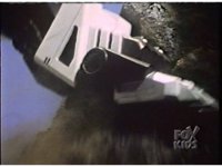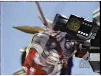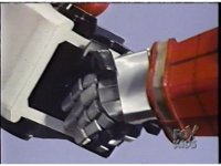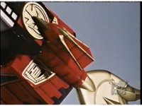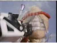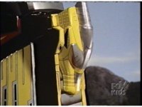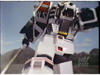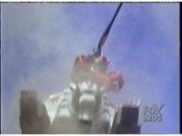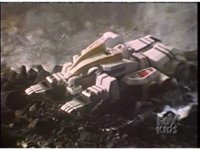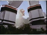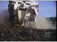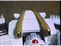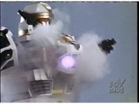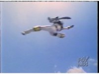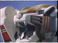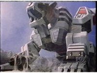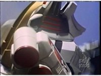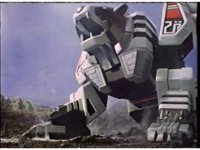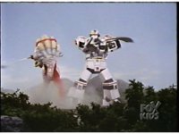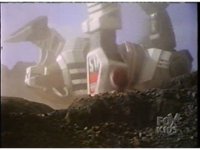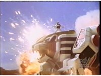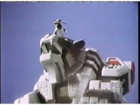Close on White Tigerzord's head, facing vertically for a moment, before toppling over backwards. |