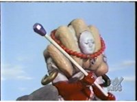 Close on giant Nimrod, whipping staff around and jutting it forth. |