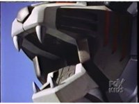 Side angle on White Tigerzord's roaring and racing head, as it suddenly vibrates into a blur. |