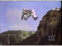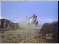 Slow zoom in as White Tigerzord charges down a dusty ravine, leaping forth with each step, White Ranger still astride its head. |