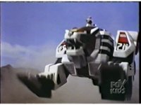 Close on White Tigerzord's head as he roars once, then swiftly takes off to our left. |