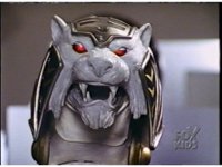 Extreme close-up of White Tigerzord's roaring face, as it suddenly vibrates into a blur. |
