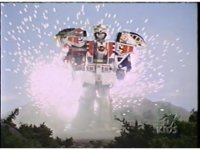 The four Thunderzords approach WTZWM in tight formation, but separate as it motions hands to sides. |