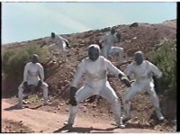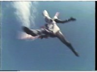 Zoom slowly in on RDTZWM, as it leaves the tilted Assault Team behind and flies forth and down, with twirling staff held up and forward. |