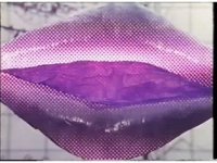 Close-up on large pair of lips, flashing purple and pink with Ben-Day dots, until a large red cartoon tongue pops out and licks across screen. |