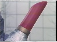 Close-up of Lipsyncher's pink lipstick left shoulder. |