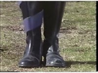 Close on RDTZWM's feet landing on the ground, facing our left. |