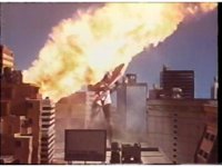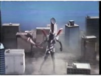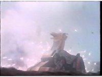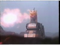 Side angle on Griffin Thunderzord, rocking neck and head back and forth, causing explosions it passes to retract, as if absorbing them. |