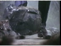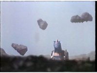 Zoom out as Lipsyncher is pummelled by a shower of large rocks and boulders. |