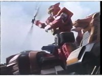 Now with the Red Dragon standing in place, the full set of five Thunder Zords ride through the sky as the Assault Team. |