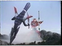 The Thunderzord Assault Team sled tilts sharply to our left, guided in this downward direction by RDTZWM's twirling staff. |