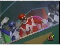 Five Rangers remain together as Power Blaster unleashes five beams of power at the screen. |