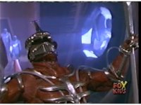 Lord Zedd stands at throne, turning from our left to our right as shot zooms in, and he emits his red ray vision. |
