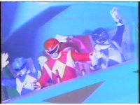 Zoom in on Thunder Megazord cockpit, lights flashing and as the whole thing tilts to our left, causing the Rangers to roll over to the left wall. |