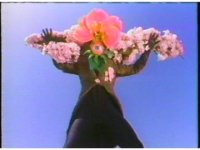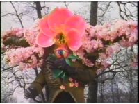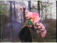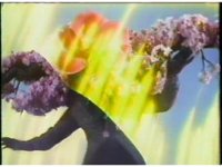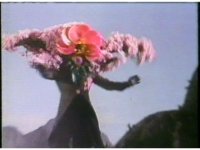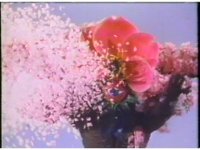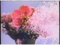 Close on Terror Blossom, as he spreads his arms out, then spews swarm of pink petals to our slight right. |