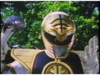 White lands atop White Tigerzord's head, turns to us, punches forth, then turns saber upside down, holding Saba up, head up. |