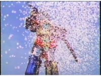 Repeat, closer, as Thunder Megazord stands solid and unmoving as pink petals swarm all around it, causing a massive bursting of sparks & smoke to erupt. |