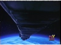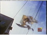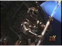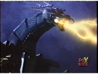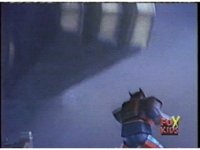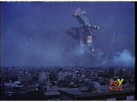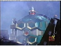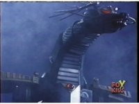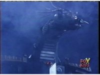 Cuts prior shot of monster & Megazord looking upward at Serpentera. Split. |
