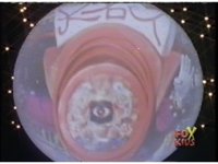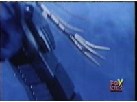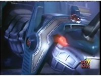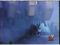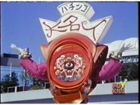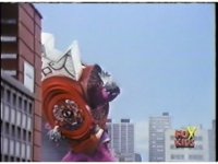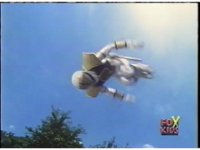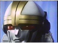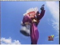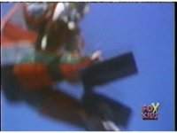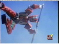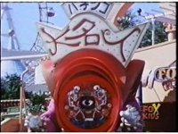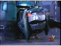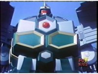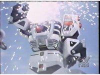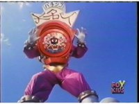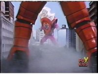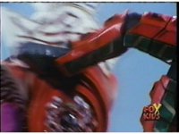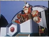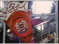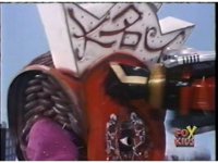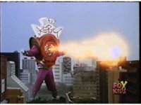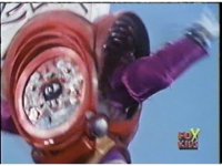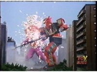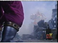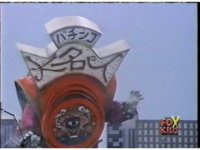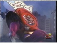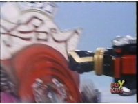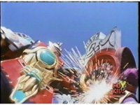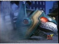 Close on Pachinko Head getting bopped in the forehead by Thunder Megazord. |
