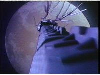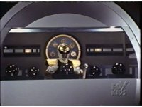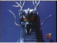 In Serpentera cockpit, Zedd stands, glances down at pilot Goldar, who then grabs controls. Zedd points forth, tauntingly. Slow zoom in on him as he sits, jerking head and punching forth briefly, finally switching staff to right hand and sitting back, stewing. |