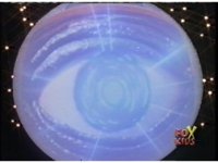 Extreme close-up on Pachinko Head's sole eye, as the iris shimmers with blue energy. |
