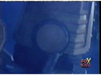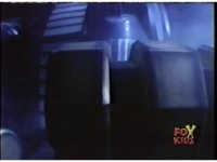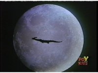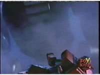 Glowing, expanding blob turns into Tor the Shuttlezord, jerking neck, snapping mouth, and stomping feet as shot zooms in. |