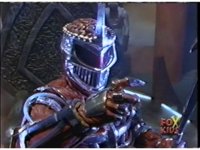 With his throne in front of the deactivated Z-Putties, Zedd quickly gets up, and camera pushes in, he points arm forth for a moment, talking. He gives a shiver, then steps back, and slowly sits back down, and just sits there, eerie and foreboding. |