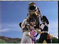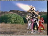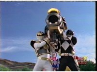 Blue & Red, Pink & Yellow, then White & Black Rangers stand shoulder to shoulder, lifting up arms, causing Power Cannon to materialize atop their shoulders. |