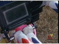 Downward close on back of Power Cannon as Red & Blue shove in locking mechanism thing. |