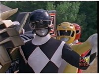 In Thunder Megazord cockpit, things are shaky, smoke rises from behind Yellow, until Black, glancing back at her, starts grabbing and turning knobs at his controls, causing things to stabilize. |