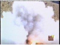 Close on a massive fireball explosion against a dark background (cut from Black getting blown up by Knasty Knight). |