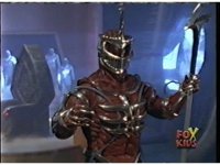 Close on Red Dragon's head as the helmet locks down over it. Pan down to green gem on chest plate. |