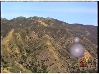 Aerial right-pass of mountain range, as Zedd's growth grenade floats past us through the air. |